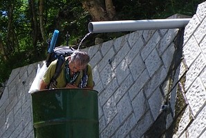 今年は昨年より2週間ほど早いからか熱気を感じない。爽やかだ。さらに今年は半ズボンで歩いてみた。これも良かった。それでも,暑いので水があると嬉しくてこんなこともしてしまう。