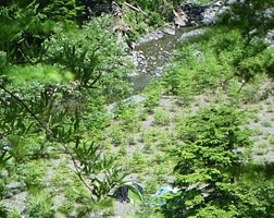 林道終点から野呂川に下る道が変わっている。昨年までのように行くと川を徒渉しなければならない。流れが変わったようだ。