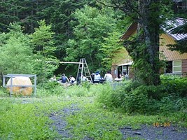 一年ぶりの両俣小屋とテント場だ。昨年と同じところにテントを張った。