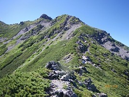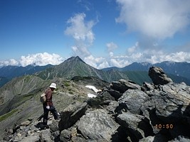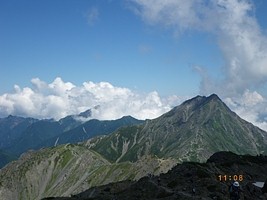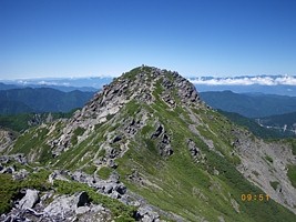 広い頂上は気持ちがいい。もっとのんびりしてくれば良かった。ということで,来年も間ノ岳を目指すことにしよう。目的は,頂上で昼寝をすることと北岳との間の3000m稜線を楽しむこと。