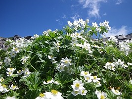 三峰岳と同じ高度になったかな。天気がいいからのんびり登れる。ハクサンイチゲやミヤマダイコンソウ?等の高山植物が目にとまる。