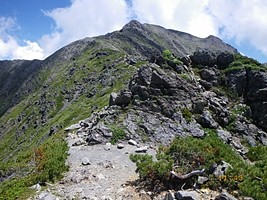 ここから見上げる三峰岳までの稜線が別に苦しくなさそうに思えたのは調子がいいからだろう。