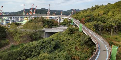 少し走ると大橋をくぐりすぐに道は右に入る。ぐるぐる回るように設計されているので楽に走れる。