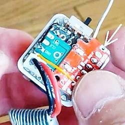 大きさはカプセルチャンと同じくらいだな。カプセルチャンは修理がきかないようだから、こちらでいく。芋虫のような姿も可愛いけど、カプセルチャンに似せてみた。半田付け下手くそだけど、こんな具合のコネクタできれいになったようだ。カバーを付ければ、イモハンダは隠れる(^^;)