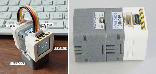 AtomS3+EchoBase+バッテリー にしたら随分体が長くなってしまった(^^;) EchoBaseと同じ大きさのバッテリーパックが出てくれればいいな(^^)