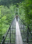 大井川を渡る橋の手前から川沿いに進む。しばらく行くと奥西河内沢を渡る吊り橋に出会う。