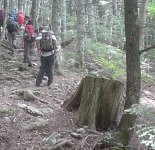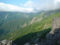 丁度空白時期で,登ってくる人は誰もいないし,下山する人も我々以外誰もいない。静かな山旅だ。天気はいいし,落ち着いた原生林帯を下る。