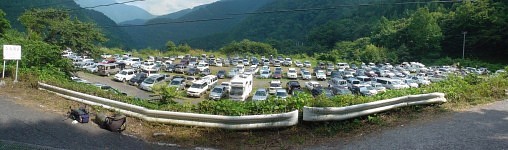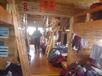 盆前だったし,ツアー客もいることから小屋は満員だった。幸いに,我々は壁側に場所を得ることができた。この小屋には別館が2棟あって,200人ほどを収容できるようだ。無理にぎゅうぎゅう詰め込むことはしない。