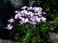 登る時には気付かなかった花がよく見える。千枚岳に多いシロバナタカネビランジだ! とその下にも,今度はピンクのタカネビランジだ。写真では色が飛んでしまっている。