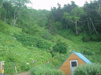 駒鳥池を過ぎ12:50,しばらくで千枚小屋に着く。13:36。登山地図では,見晴台から小屋まで3時間になってはいるが,少々大袈裟で,2時間で済む。