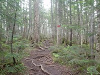 しばらくトラバースは続くが,大木が茂る気分の良い緩やかな道がこのコースの良いところだ。どこでもゆっくり休んでいきたくなる。わざとゆっくり進んで,ビバークという手もあるかもしれない。