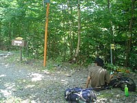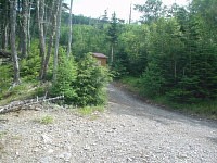 登山道から少々上がると,その見晴台があり林道とつながることが分かる。先に携帯トイレの使用ブースがある。ちなみに,ここで使用した携帯トイレの回収箱が千枚小屋手前の西に大きく折れるところに設置してある。また,南に下る踏み跡があるが,登山道とぶつかるようだ。下山の時には便利かもしれない。