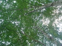 さらに下って登りの時には味わえなかった庭園風の岳樺道を楽しんだ。人がいなくなった千枚小屋前でのんびりして,昨日登ってきた道を下り始めた。7:30