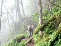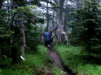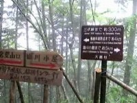 右に荒川岳方面への道を分け,しばらくで三伏山。ここは展望がいいが,霧の中。太陽の直射日光に晒されないし,空気もしっとりして乾燥しないので有り難い。けれど,ずっとこのままでは,頂上に行くのも苦しくなる。