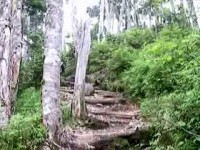 しばらく谷筋ふうの樹林の中を登る。40分ほどで尾根に登りつく。ここを第1のコルとでもしようか。大きく北に向かいだして,相変わらずの樹林帯歩き。豊口山の山腹をトラバースしている。