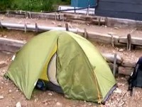 この後,早めに夕食を作った。腹心地良くなって18時にはシュラフに入って寝てしまった。寝入りばなに大雨が降ったのを辛うじて聞いている。テントのチェックもしないで,そのまま寝てしまった。夜中の0時に目が覚めた。外へ出てみると,雲ひとつない星空。残念なことに,昨晩もそうだったが,降るような星空ではなかったこと。