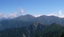 塩見岳は2度楽しめる。登り詰めた頂上は三角点のある西峰。東峰はそれより高く狭い岩だ。ここに2時間留まった人がいた。羨ましい。塩見小屋に泊まれば十分楽しめる。