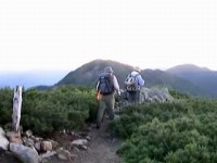 三伏山を緩やかに下り,お花畑を過ぎながら急登すると本谷山。ここでメール通信。安否と下界情報も入手しておく必要がある。