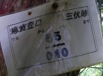 登山口から三伏峠までを10分割して,こういう標識が貼られている。これは問題の5/10。何枚もあるのだ。これは一体時間なのか,距離なのか。ちなみに,ここに着いたのが7時57分。峠から1時間かかっている。登山口が8時48分だから,時間で5/10というわけではないな。