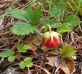 登る時に見つけたのだが,林道の両サイドにはイチゴがあちこちにあったのだ。右のものは普通のイチゴそのままだ。左のイチゴはノウゴウイチゴか? 思わず口に入っていたが,味は良くなかった?!