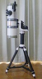 AZGTiを接続して10cmF4反射を載せると、少々積載オーバーのような感じ。使えないことはないけれど、無理がありそうだ。AZGTi用の三脚がオークションに出ていたのでゲットしてしまった(^^;)